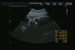 2115gで少し大きめ!笑!今回は真正面から顔を見れたけど仏像!笑!仏像に似てるのにやはり我が子なだけに可愛い…笑。また上の子達に写真見せたらゲラゲラ笑いそぉ…^^;逆子も治ったし良かった♪ママの体重は初診よりプラス2kg♪順調ですね~