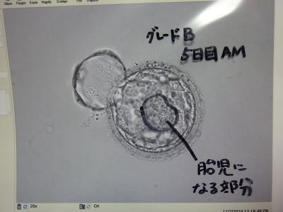 19日目10:00、杯盤胞(Bグレード、拡張胚盤胞)を移植。